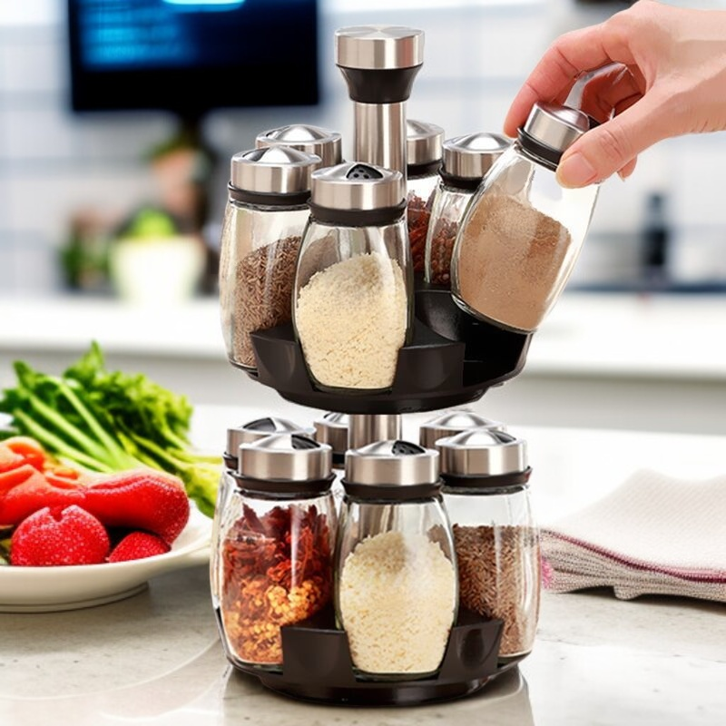 回転式キッチン調味料ラック 調味料ボトル収納棚 キッチン調味料整理ツール